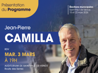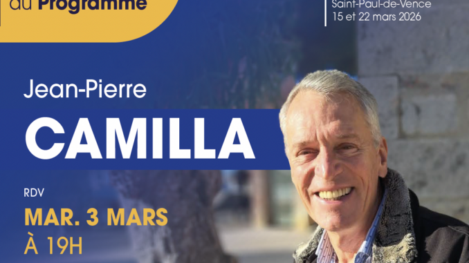 Jean-Pierre CAMILLA a le plaisir de vous inviter à la présentation officielle du programme et de l’équipe Cap Pour Saint-Paul-de-Vence, le 3 mars 2026 à 19h, à l’Auditorium, Route des Serres à Saint-Paul-de-Vence. […]